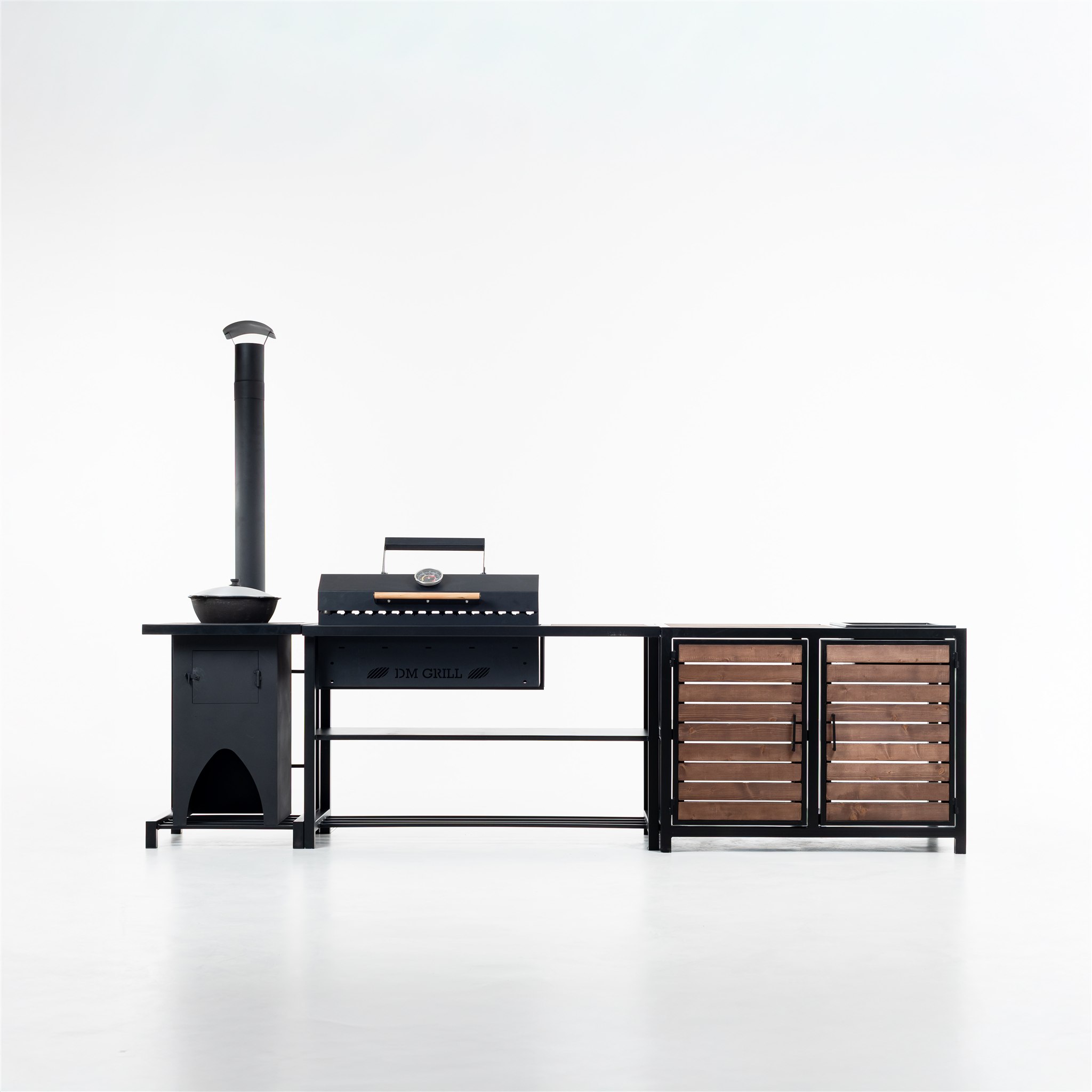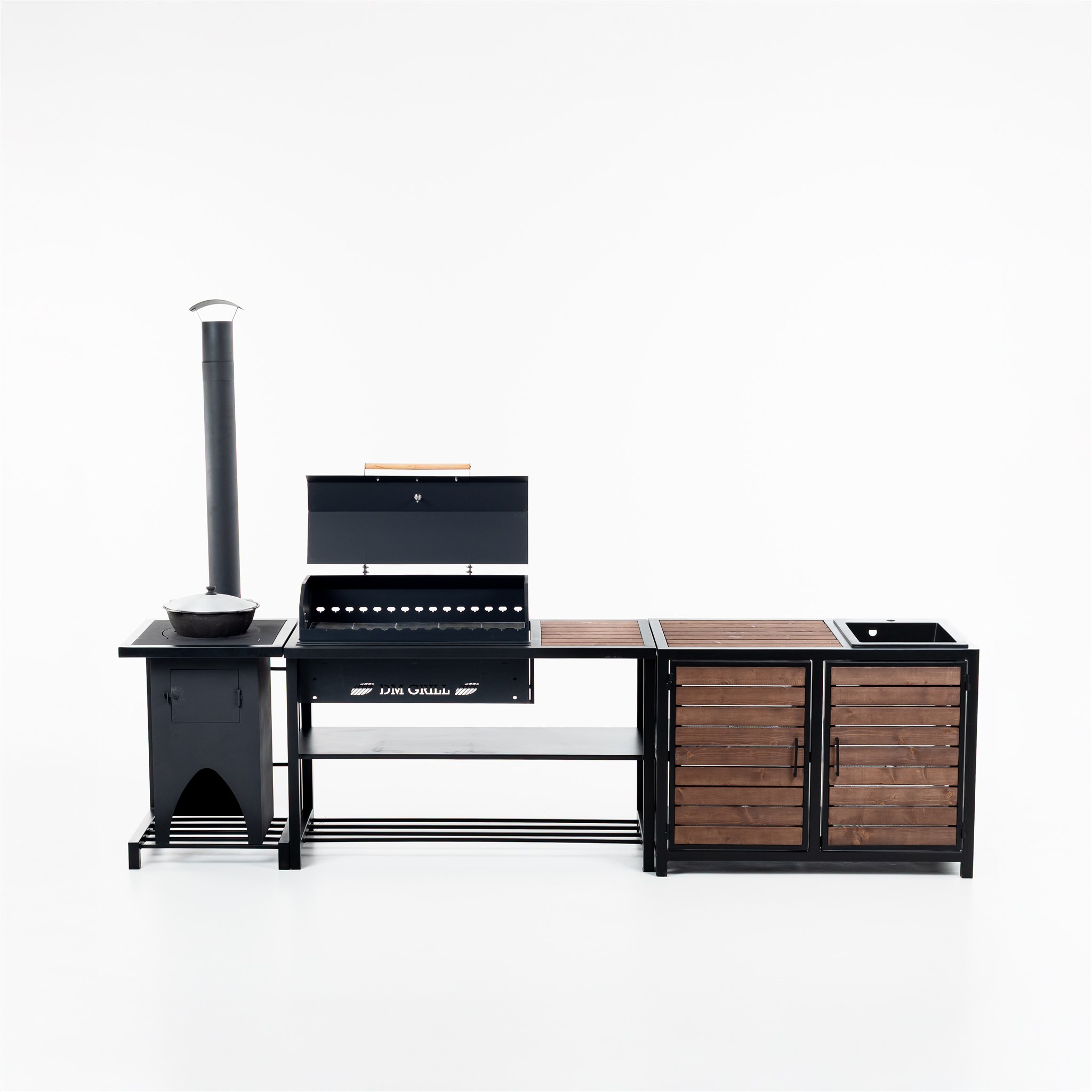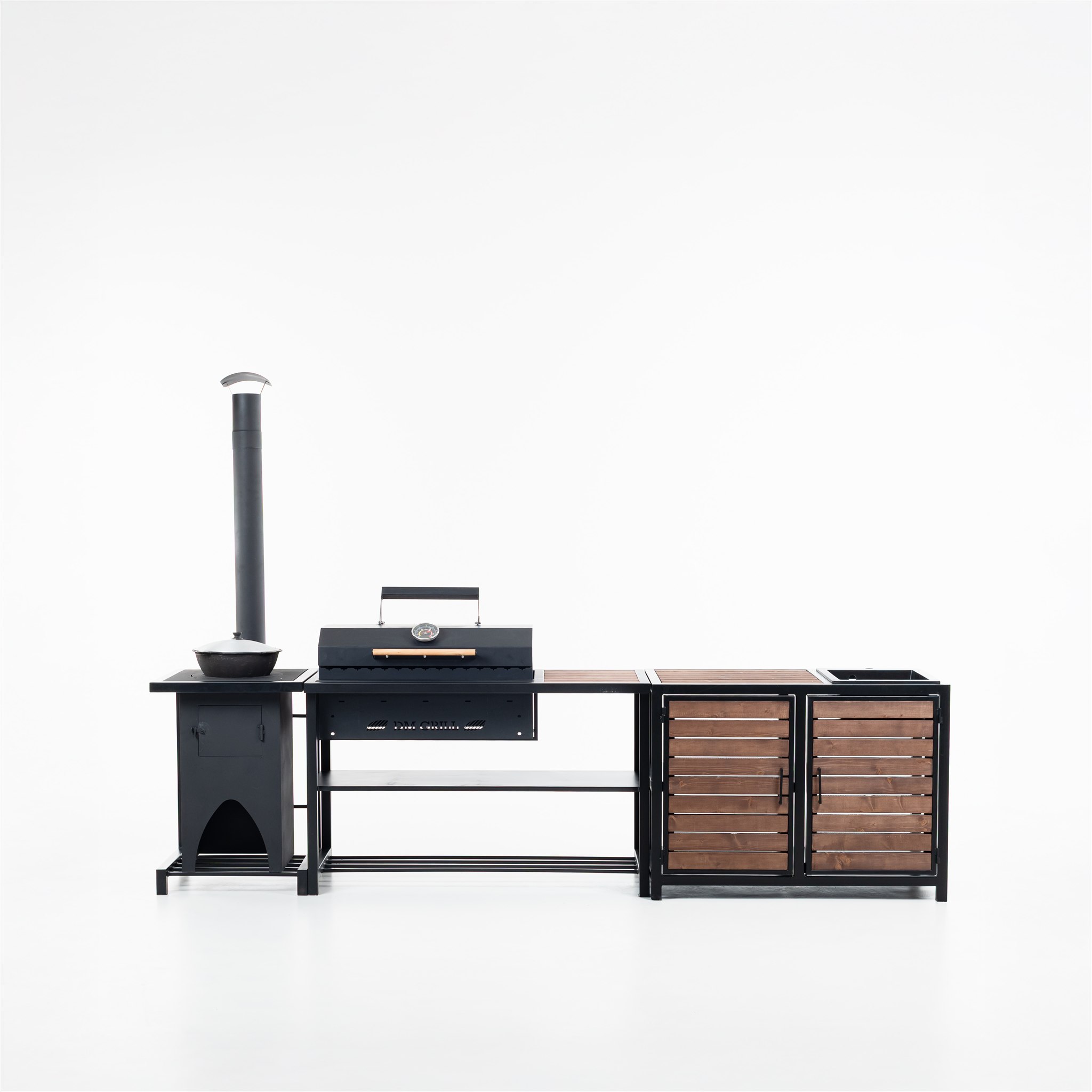 Aia väliköögisüsteem koosneb kolmest eraldiseisvast moodulist: katlaahi, grill koos lisatööpinnaga ja laud sisseehitatud kraanikausiga. Moodulite paigutust saab vastavalt vajadusele muuta.