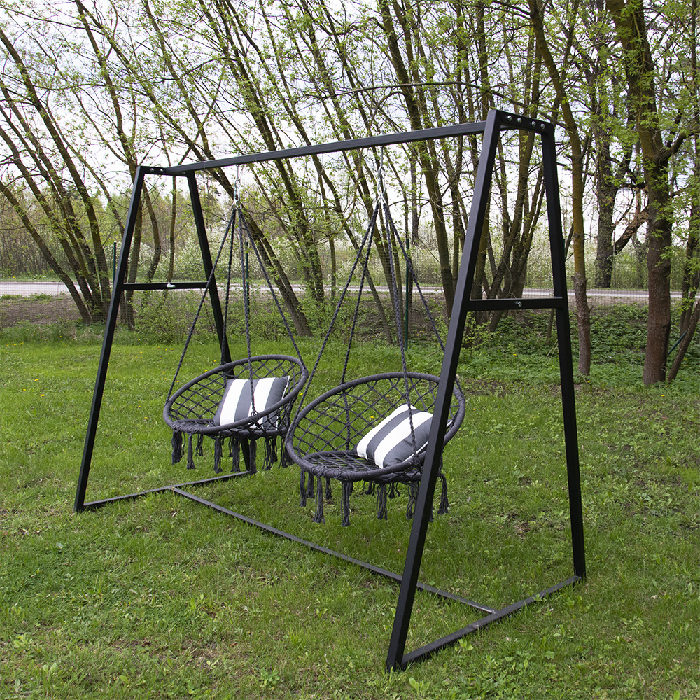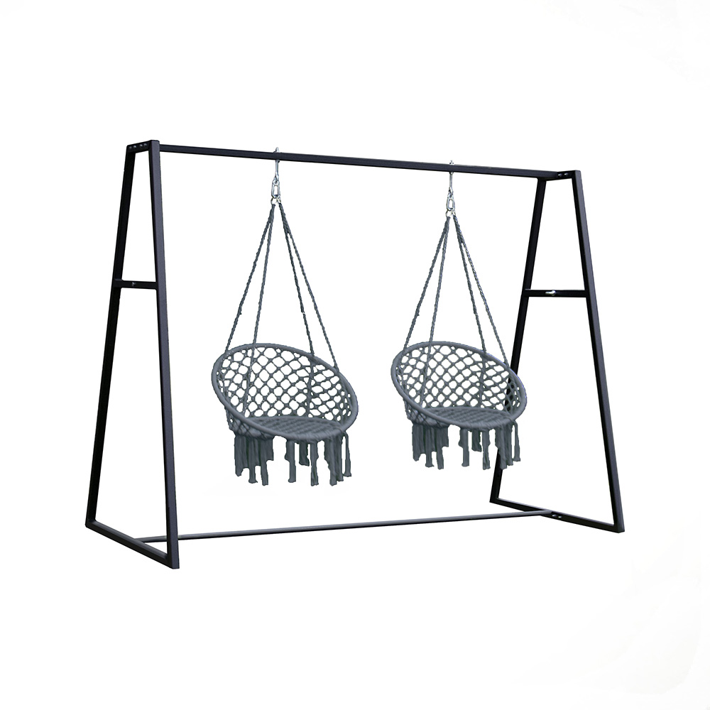 Metāla rāmis ar divām pelēkām iekarināmām šūpolēm