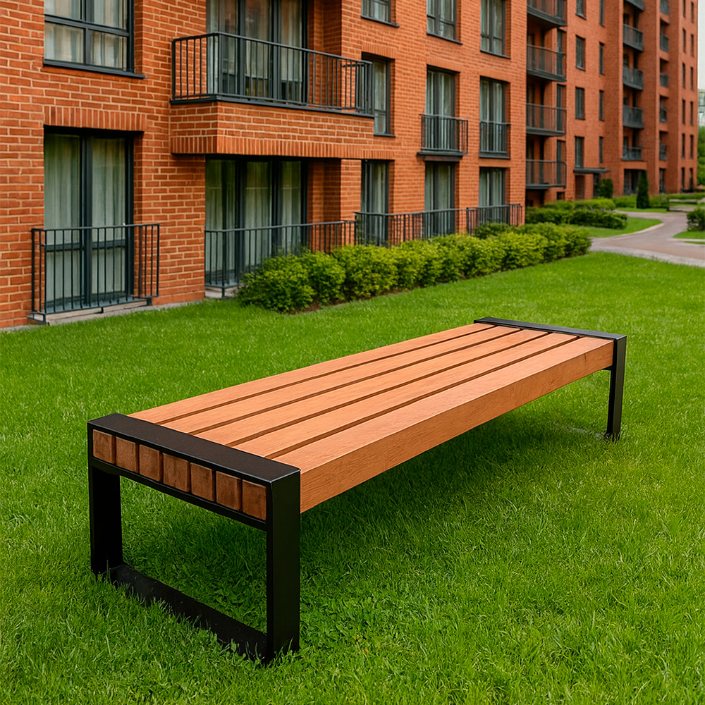 Добавьте элегантности и уюта в любое пространство с этой стильной скамейкой из дерева и металла. Идеально подходит для дворов, парков, террас и общественных зон.